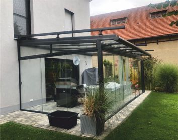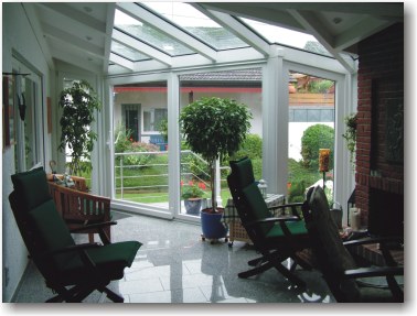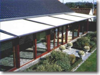 Sonnenschutz mit Seitenführung für Wintergärten und schräge Glasdächer